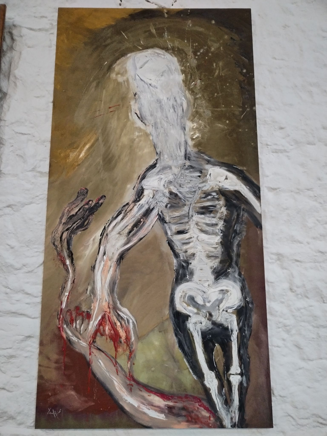 An original oil, 1m x 2m from artist Andrew C Waterhouse. A window into the fear and horror of war. Private viewing by appointment or online, email burrenartgallery@gmail.com